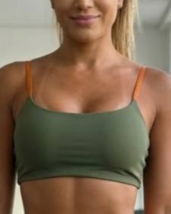 Top Fitness Thayná Verde Oliva/TerracotaTop Thayná — Modelo com alças finas, decote reto e caimento que valoriza o busto com leve sustentação. Ideal para quem busca conforto, estilo e versatilidade no look fitness ou casual. M40/42 – G44/46 (Modelo veste G)
